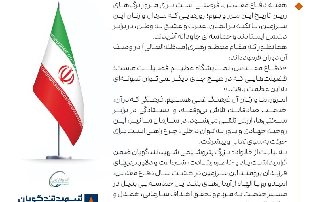 پیام مدیرعامل پتروشیمی شهید تندگویان به مناسبت هفته دفاع مقدس