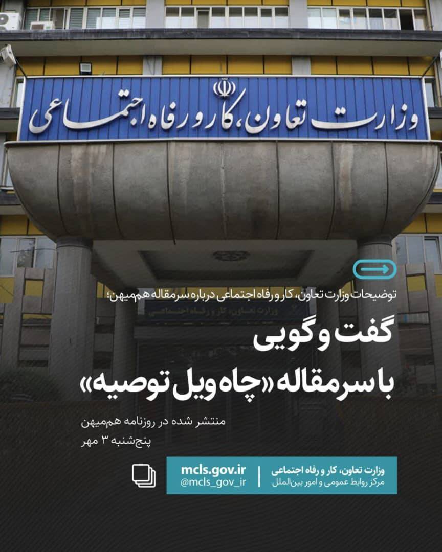 توضیحات وزارت تعاون،کارورفااجتماعی درباره سر مقاله هم میهن،