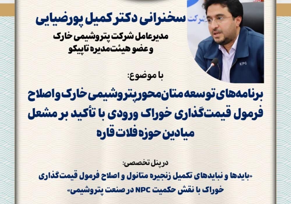 این نشست با محوریت «برنامههای توسعه متانمحور پتروشیمی خارک و اصلاح فرمول قیمتگذاری خوراک ورودی با تأکید بر مشعل میادین حوزه فلات قاره» برگزار میشود.
